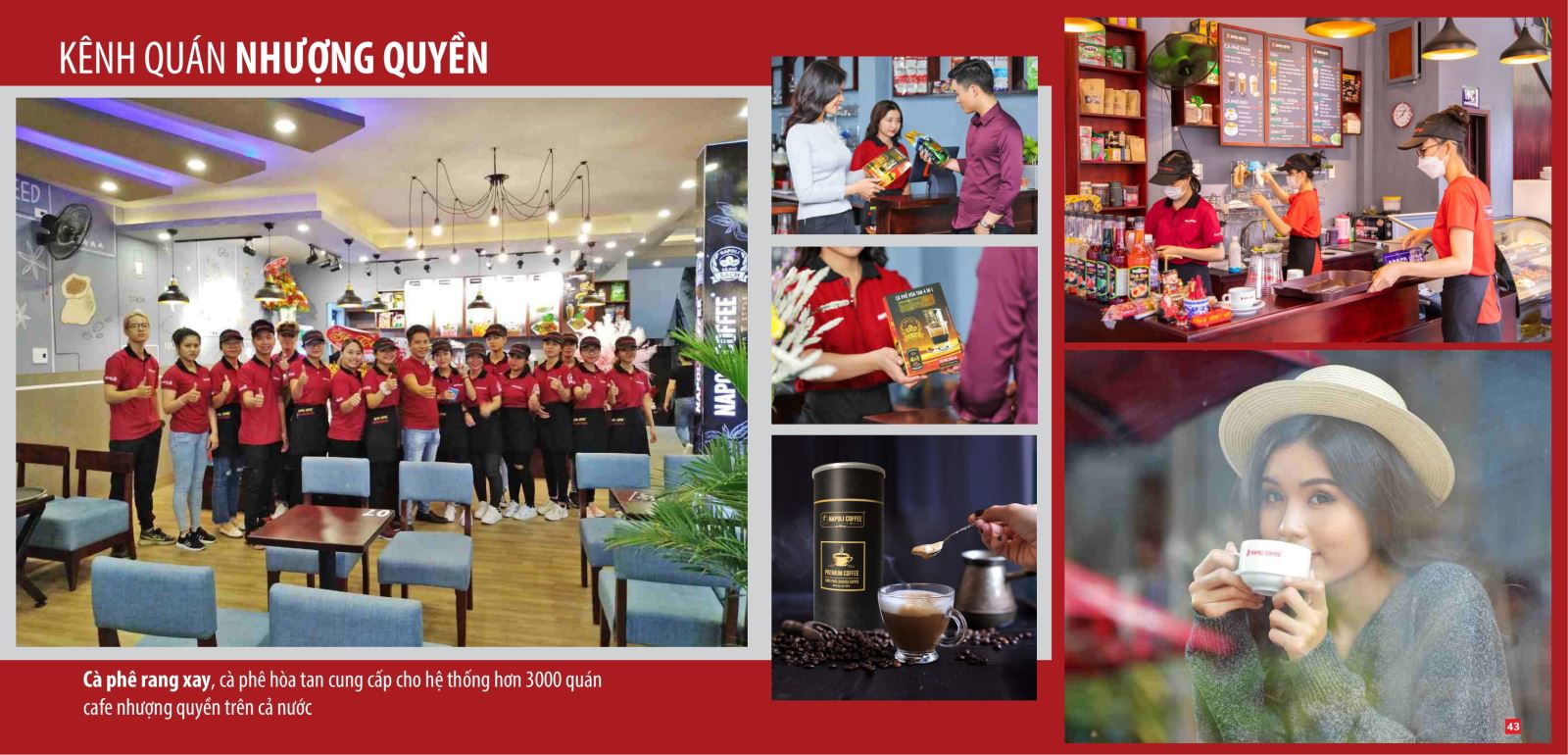 - Kênh nhượng quyền: Với hơn 3.000 quán nhượng quyền trên khắp Việt Nam, Napoly là lựa chọn hàng đầu cho các nhà đầu tư, đồng thời là điểm đến yêu thích của người yêu cà phê.